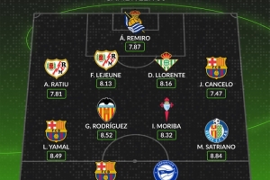 WhoScored西甲第30轮最佳阵容