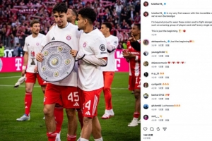 迪亚斯社媒写道:在我与这家杰出俱乐部共度的首个赛季,我们赢得了德甲冠军!
